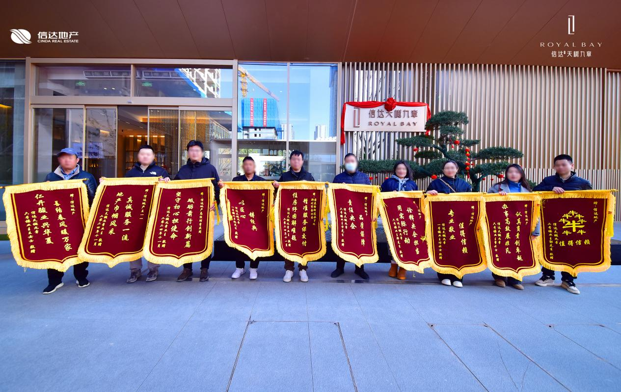 多位业主亲临现场实境感受后,纷纷送来荣誉锦旗,表达对信达地产高效推动项目复工复产高品质实现交付的诚挚感谢。